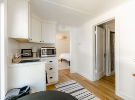 This stylish and secluded guest house sits on the lower level of a classic 1935 Spanish home, surrounded by half an acre of lush greenery. Fully remodeled in late 2022, the space offers comfort, privacy, and modern convenience in a serene garden setting.