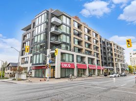 Welcome to Q West!. This stunning, FULLY-FURNISHED one-bedroom, one-bathroom unit features rich hardwood flooring, high ceilings, open-concept living spaces, and expansive windows that flood the unit with natural light. The all-white kitchen features granite countertops, stainless steel appliances, in-unit laundry and a kitchen island, perfect for entertaining, and great space for a workstation if you are working from home. The spacious living room is adjacent to the kitchen and has access to the private balcony. This location is within walking distance of locally owned cafes, artisan bakeries, restaurants, breweries, LCBO, and grocery stores. The unit comes with one underground parking spot. The Unit comes with one underground parking spot.