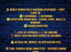 Fully Renovated 3-Bedroom Apartment for RENT First Floor Beautiful and spacious 3-bedroom, 1-bathroom apartment located in a great area near Noches de Colombia, Paterson, NJ. The apartment has been fully renovated from top to bottom everything is brand new! Freshly painted New floors, walls, and windows Shared backyard Pets allowed with approval No smoking First-floor unit is located in a convenient area close to restaurants, shops, and transportation. No realtor, broker, or application fees! Final touches are being completed pictures coming soon! Be the first to move into this beautiful, newly renovated home. Message us for more details or to schedule a showing once it's ready! Apartamento de 3 Habitaciones Totalmente Renovado para Aquiler Primer Piso Hermoso y espacioso apartamento de 3 habitaciones y 1 bano, ubicado en una excelente zona cerca de Noches de Colombia, Paterson, NJ. El apartamento fue renovado completamente todo es nuevo! Recien pintado Pisos, paredes y ventanas nuevas Patio compartido Se aceptan mascotas con aprobacion No se permite fumar En el primer piso, cerca de restaurantes, tiendas y transporte. Sin cargos de corredor, aplicacion ni comisiones! Se estan terminando los ultimos detalles fotos disponibles pronto. Sea el primero en estrenar este hermoso apartamento renovado! Contactenos para mas informacion o para programar una visita cuando este listo.