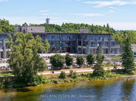 Welcome to a rare opportunity to lease in Fenelon Falls' newest and most luxurious boutique condo building-nothing else like it in the Kawarthas. Perfectly positioned on the west shore of Cameron Lake, this top-floor suite delivers unmatched views, direct access to Cameron Lake & the Victoria Rail Trail, and resort-style living year-round. This brand-new, never-lived-in 1 Bedroom + Den, 2-bathroom penthouse-level suite is bright, modern, and beautifully designed. Enjoy spacious open-concept living with 9 ft ceilings, floor-to-ceiling windows, a cozy gas fireplace, and a chef's kitchen featuring a gas cooktop, quartz counters & a breakfast bar. The primary bedroom includes a walk-in closet and sleek 3-piece ensuite, while the den is ideal for a home office or guest area. A massive 216 sq ft private balcony with gas bbq hook up offers fresh air and room to unwind. Includes one underground parking spot & large locker. Resort-like amenities including a party room with terrace overlooking the lake, gym/yoga room & sauna, outdoor pool/hot tub & tennis/pickleball court, 2 guest suites & plenty of visitor parking! Just a 5-minute walk brings you to Fenelon Falls' charming downtown, complete with all the amenities and services you need, including cafes, specialty shops & great restaurants. Enjoy the sights of boats navigating Lock 34 of the Trent-Severn Waterway, and catch events at the beloved Grove Amphitheatre.