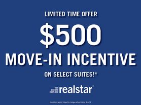 - Special offer! $500 RENTAL INCENTIVE ON SELECT SUITES!* -