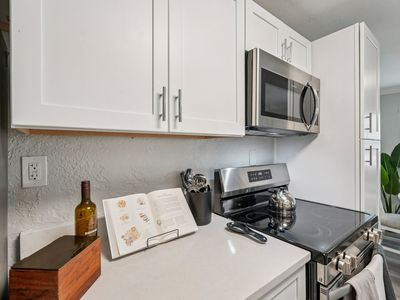 Fully equipped kitchenBuilt-in microwaveInviting and functional layoutSmooth-top range