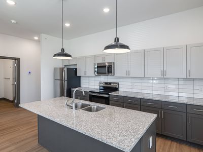 Open floor planPrivate patioTwo bedroomsModern luxury vinyl flooringLiving and dining areasOne bathroomCentral heat and air