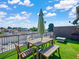 Experience contemporary luxury living in this beautifully upgraded West Los Angeles townhouse, every inch of this home has been thoughtfully designed with modern comfort and style in mind. Step inside to find wide-plank French oak flooring flowing throughout the main living areas and bedrooms. The entry level opens to a versatile family room/den, perfect for relaxing or entertaining guests. The gourmet kitchen is a true showpiece featuring custom cabinetry, quartz countertops, wine fridge, a striking tile backsplash, and top of the line Viking Professional appliances. The kitchen seamlessly connects to a spacious dining area and open-concept living room, complete with a cozy fireplace and an abundance of natural light. Upstairs, all bedrooms are thoughtfully situated for privacy and comfort. Two secondary bedrooms share a beautifully updated hall bathroom, while the primary suite impresses with soaring ceilings, ample closet space, and a private ensuite bath. Additional features include bidet-style toilets in all bathrooms, in-unit laundry upstairs, and a private two-car garage with direct entry. A private staircase leads to a large loft ideal for a home office, studio, or gym and access to your very own rooftop retreat. The rooftop deck is an entertainer's dream, featuring decking, pet-friendly turf, built-in BBQ, gas fire pit, Pottery Barn outdoor dining set with umbrella, and panoramic city views perfect for sunset gatherings or quiet evenings under the stars. Located in a prime West LA neighborhood, just moments from Stoner Park, Target, Wilshire Blvd dining and cafes, and everything the Westside has to offer.