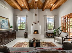 Electric fireplaceShower over tub bathTraditional pueblo architectureSpacious bedroomSuperb light and views