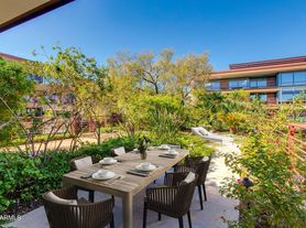 Fully furnished, penthouse condo, located in the highly coveted Optima Camelview Village! 3 bed, 3.5 bath plus an office. The views alone are some of the best around with panoramic views of the McDowell Mountains. Contemporary upgraded features thought the entire home. The wrap-around terrace is the signature piece of this home with lush, desert landscaping and plenty of covered patio space to enjoy the gorgeous Arizona weather. A two-way fireplace separates the great room area from the kitchen & dining areas. A chef's kitchen built for entertaining features an island with eat-up bar seating, gas cooktop with oven, matching overlays on the cabinetry with lots of storage space, and a wine fridge. A split primary bedroom with its own private terrace. Master bath has dual vanities, soaking tub with jets, oversized seamless shower. Large walk-in closet with built-ins. Additional guest bedrooms both have full en-suite baths. A private office, powder room and full laundry area round out the magnificent rooms in this home. Two reserved parking spaces in gated, secure parking garage are included. An endless supply of community amenities including a 24,000 SF health club, heated pools & spas (indoor and outdoor), enclosed dog walking track, onsite concierge, business center, racquetball and basketball courts, putting green, and beautiful, lush, landscaped grounds. Located within walking distance to Camelback Fashion Square or Old Town Scottsdale for an abundance of shopping and eating places. All you have to do is bring your clothes and toothbrush - the rest is provided for you!