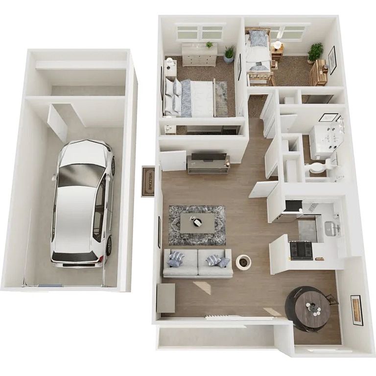 Two-bedroom designDining spacePlenty of storage