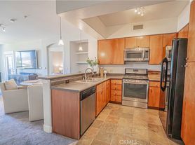 Live in luxury in The Madison condominium community in Valencia. Walk to the mall, theaters, gym, restaurants or just stay home and enjoy all the amenities of this complex including a resort style pool and spa area, gym, lounge and theater. This beautifully upgraded condo features designer upgrades throughout. The entryway features slate stone flooring and opens to the modern kitchen with granite countertops, recessed lighting, and breakfast bar with pendant lights. Kitchen appliances include a stove, single oven, dishwasher, microwave, and refrigerator. The dining area has a built in study nook with a granite countertop and shelves. The dining area opens to the living room with plantation shutters, a ceiling fan, and a door to the balcony with a great view of the city. The double door laundry closet features full size washer and dryer. This unit features two master bedrooms, both with ceiling fans, plantation shutters, walk in closets, and attached full bathrooms with granite countertops. One bedroom has a single vanity, the other bedroom features a sliding glass door to the balcony, a linen closet, and double sinks in the bathroom. This condo features designer crown molding and base molding throughout. Two covered parking spaces in the secured parking garage. *Owner may consider a small pet.