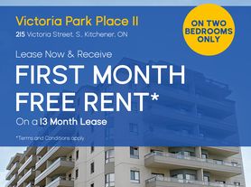 Victoria Park Place II 1 & 2 Bedroom Apartments for Rent in KitchenerLooking for 1 or 2-bedroom apartments for rent in Kitchener? Welcome to Victoria Park Place II, a stunning rental community at 215 Victoria Street S. With an indoor saltwater pool, hot tub, sauna, fitness room, and social room, this building offers a luxurious lifestyle in a prime location.Live Near Kitchener's Best AttractionsVictoria Park Place is steps away from Victoria Park, Kitchener's oldest and most beautiful park, perfect for morning jogs or weekend strolls. Whether you're a young professional, couple, or downsizer, Victoria Park Place offers upscale living in the heart of Kitchener.Book a Tour Today! Contact us to find your new home at Victoria Park Place II, 215 Victoria Street S, Kitchener.Close to bus route: 20 Victoria-Frederick.- Video surveillance- Underground parking- Visitor parking- Elevators- On-site staff- Storage lockers- Wheelchair Access- Air conditioner- Fridge- Stove- Balconies- Carpeted floors- Individual thermostats- In-suite storage- Park views- Walk-in closets- Cable ready- Public transit- Shopping nearby- Parks nearby- Internet ready- Eat-in kitchen- Rogers Cable and Bell satellite available through building cable system- Indoor saltwater pool, hot tub & sauna- Hydro paid to Wyse Meter Solutions- Secured Entry- Barrier-free access to entrance- Dishwasher- Electric Vehicle (EV) Charging- In-suite washer & dryerPlease Note: Townhomes may have multiple models available at different starting prices. Apartment prices listed are the starting price for the suite style and may be more depending on the height and view of the actual available unit.