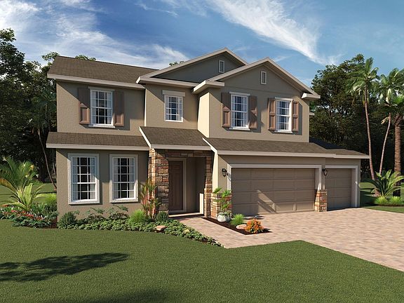 The Exbury Executive is designed for those who want more space and style.. Built on an oversized lot with a three-car garage, this home features a luxurious first-floor primary suite. The expansive main living area includes an impressive kitchen island with abundant counter and cabinet space, flowing into a spacious dining area that opens to a covered lanai-perfect for entertaining and effortless indoor-outdoor living. The open-to-above design enhances the home's bright, airy atmosphere, creating a welcoming space for family and friends.