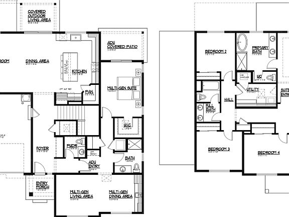 Upstairs, the private primary suite includes a generous bedroom, spa-inspired bath with soaking tub and walk-in shower, and a large walk-in closet. Three additional bedrooms share a full bath, with the utility room conveniently located on the same level. This home blends spacious gathering areas with thoughtfully separated living zones, making it perfect for today's multigenerational lifestyle.