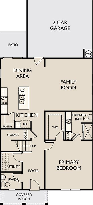 From the covered porch, you step into the foyer where you're greeted by a powder bath and a conveniently located laundry room. As you make your way toward the main living area, you'll pass the staircase to the second floor and the entry to the primary bedroom, which features a walk-in closet and a spacious primary bath. The heart of the home opens into the kitchen, family room, and dining area-perfect for gathering and entertaining. Off the dining area, you'll find access to the two-car garage and a back patio for outdoor enjoyment. Upstairs, a central loft leads to three additional bedrooms, all sharing a full bath. Two of the bedrooms include their own walk-in closets, offering plenty of storage space.