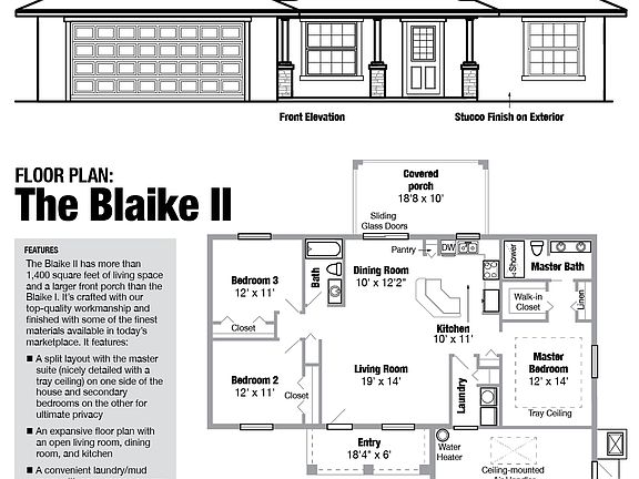 With more than 1,400 square feet of living space, the Blaike II is crafted with our customary top-quality workmanship and finished with some of the finest materials available in today's marketplace. It features: A more elongated front porch than the original Blaike model; a split layout with the master suite (nicely detailed with a tray ceiling) on one side of the house and secondary bedrooms on the other for ultimate privacy; an expansive floor plan with an open living room, dining room, and kitchen; a convenient laundry room with easy access to the garage; storage galore with no less than 8 closet/pantry areas; a welcoming and inviting covered entry at the front of the house; a large lanai providing a relaxed space for entertaining, cooking on an outdoor grill, or just enjoying the gorgeous Florida weather NOTE: Pricing does not include property, water, and sewer/septic costs