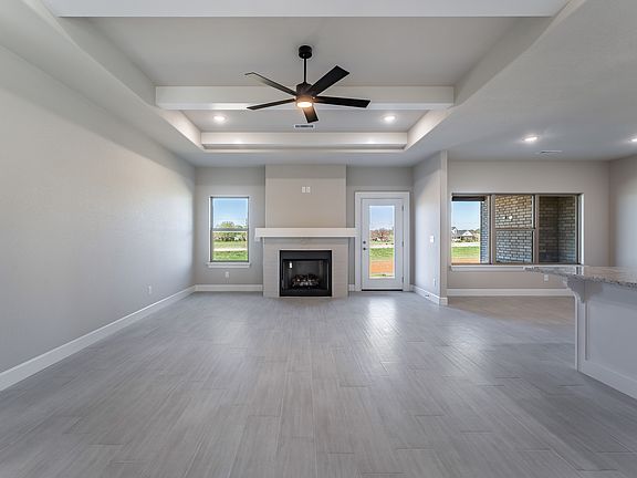 This beautiful 3-bedroom, 2-bath home features a welcoming foyer, cozy living room with a fireplace, and an open dining area perfect for gatherings. The kitchen offers modern appliances, ample counter space, and a nearby office for added flexibility. The spacious primary suite includes a walk-in shower and plenty of storage, while two additional bedrooms share a full bath. Enjoy outdoor living on the covered patio with its own fireplace-ideal for relaxing or entertaining year-round.