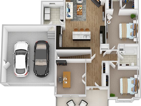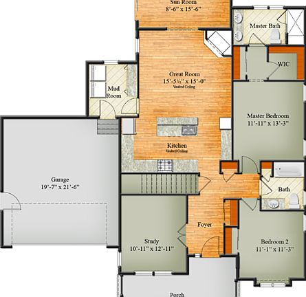 The BEST in one-story living, the Saranac exemplifies a harmonious blend of efficiency and style, making it an attractive option for those looking to downsize and get rid of stairs. This plan features 2BR/2Baths and a private study, ideal for a home office, a hobby room, or a 3rd BR. The design of the living area enhances the overall ambiance of the home, with vaulted ceilings in both the Great Room and Kitchen, creating an open and airy feel with a cozy corner FP. Well-appointed, spacious Kitchen with SS appliances, quartz countertops, and island and a mudroom with wainscotting and hooks. Super-efficient spray foam insulation makes for substantially lower utility bills.
