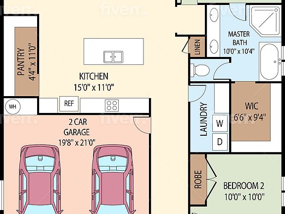 - Attached garage spaces: 2