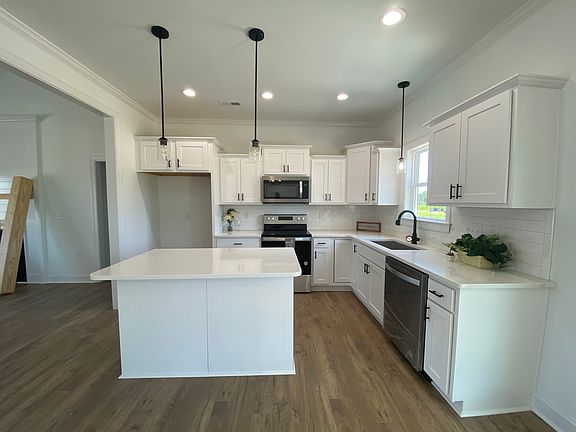 The Columbia Plan!! This home is over 1,700 sq.ft. Split bedroom ranch design featuring 3 bedrooms & 2 bathrooms! Large living room with vaulted ceilings and gas log FIREPLACE, spacious ISLAND kitchen, tile backsplash, Stainless Steel appliances, QUARTZ countertops, breakfast bar and dining area!! Laundry room leading to 2 car garage. Primary suite with large walk in closet, dual vanity, soaking tub and separate shower. Covered porch plus additional patio. Upgraded design selections and added smart home features!!