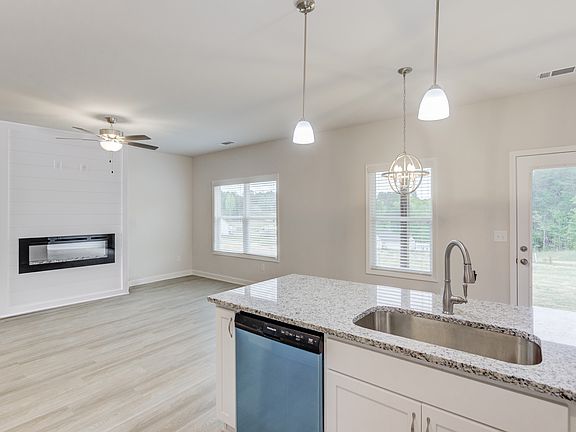 New construction townhomes offer hardie board siding in muted neutral tones with stone or brick accents and stained wood shutters. The covered entry welcomes you to an inviting main living area with shiplap electric fireplace and LVP flooring. The white cabinet kitchen features granite countertops, tile backsplash, walk-in pantry and bar stool seating. The breakfast area leads to a private covered back patio. Half bath downstairs with pedestal sink. Wood stairs lead to the secondary bedrooms and laundry room. The owner's suite is amazing! Bedroom and sitting area combined with large walk-in closet. The bath features double vanity sinks, linen closet and large tile shower with glass door. Granite and faux wood blinds throughout. 2 Car Garage. Yard maintenance included in your HOA dues. Enjoy the pool and cabana area once the development is complete.