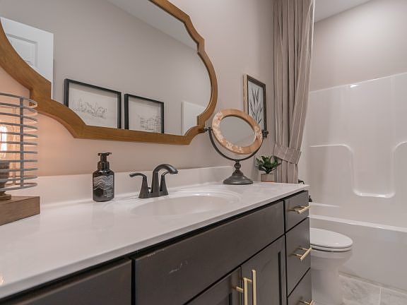 Welcome to the Yosemite ranch at Falling Waters. As you walk through the front door, you're immediately welcomed by a spacious foyer that leads into the heart of this beautifully designed home. On one side, you'll find the first of three bedrooms, a bright and comfortable space perfect for guests or a home office. Continuing down the hallway, you enter the expansive great room, a true centerpiece of this home. The area is ideal for both relaxing and entertaining. The open layout effortlessly connects the great room to the kitchen and breakfast area, making it easy to stay engaged with loved ones while preparing meals. The kitchen is a chef's dream, featuring modern appliances and an efficient workspace. The adjacent breakfast nook is perfect for casual dining and morning coffee. If you prefer more formal dining, there's a dedicated dining area that can also be converted into a cozy den. The primary suite is a true retreat, located at the back of the house for added privacy. This spacious bedroom features an en-suite bath with a soaking tub and separate shower, ensuring a relaxing end to your day. The walk-in closet provides plenty of storage space for all your wardrobe needs. Another highlight of the Yosemite model is the practicality of its layout. The laundry room is conveniently located near the bedrooms, making household chores more manageable. With a total of 2,270 square feet, 3 bedrooms, 2 baths, and a basement, the Yosemite ranch is designed for convenience and style.
