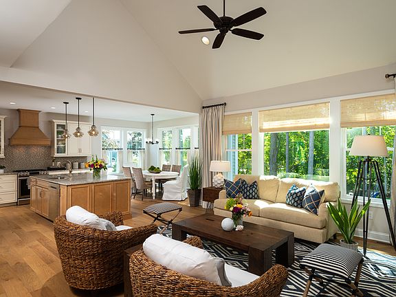 This charming cottage/bungalow has great street appeal and is available in three elevations. The Westerly makes a great first impression. The large foyer opens to a formal study with optional French doors and stairs leading to the lower level. Hardwood floors extend from the entry foyer into the kitchen and dining area. The great room features a gas-burning fireplace and has the option to add a cathedral ceiling. It opens to the kitchen featuring a large working island and plenty of room for storage with a large walk-in pantry. An optional screened porch, sunroom or deck is available conveniently adjacent to the dining area.