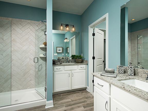 The open design of the home makes it welcoming and comfortable for every day living and entertaining. The kitchen features a large island with granite countertops and opens to a dining area and the great room. The great room features a gas burning fireplace with granite surround and wood mantle and offers the option for either a stepped or coffered ceiling. An optional deck, screen porch or 4-season room is available off the dining room. The primary bedroom suite enjoys the privacy of a separate alcove off the great room and includes the option for a stepped or cathedral ceiling. The primary bath features two vanities with quartz countertops and entry to a spacious walk-in closet. A mudroom with an optional bench is conveniently located off the 2-car garage.