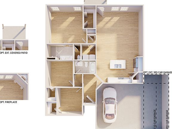 3) Third car over-sized garage option accommodating the longest passenger vehicles!