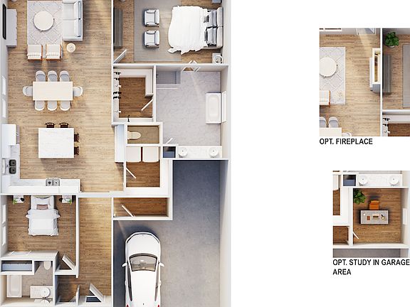 3) Third car over-sized garage option accommodating the longest passenger vehicles!