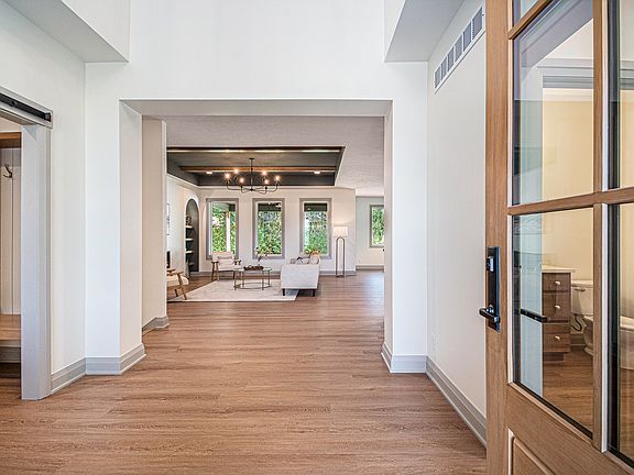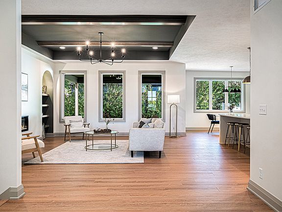 Introducing a stunning custom home nestled in the White Horse neighborhood, offering four bedrooms and a wealth of luxurious features. Enter the open-concept living area, seamlessly integrating the chef's kitchen with high-end appliances and a spacious island, complemented by a walk-in pantry for ample storage. The cozy living room boasts a custom fireplace, built-ins, and exposed beams on the ceiling, exuding warmth and charm. The primary suite features a coffered ceiling and wall feature for added elegance, as well as a soaking tub and custom tiled shower in the bathroom, while the lower level hosts a spacious rec room with a wet bar for entertaining.