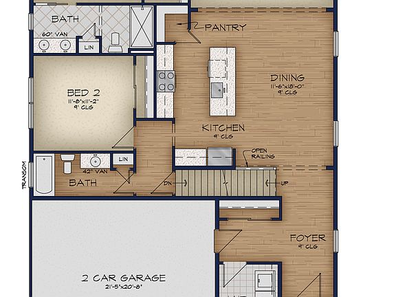- Attached garage spaces: 2