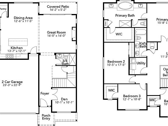 This thoughtfully designed two-story home offers the perfect blend of open-concept living and functional spaces for today's lifestyle. The main level welcomes you with a covered porch entry leading into a spacious foyer and a versatile den, ideal for a home office, guest space, or quiet retreat. The heart of the home features a beautifully connected kitchen, dining area, and great room, creating a bright and inviting space for both everyday living and entertaining. The kitchen includes a large center island, walk-in pantry, and wine refrigerator, while the dining area opens directly to a covered patio, making indoor-outdoor gatherings effortless. A convenient ¾ bath is also located on the main level for guests. Upstairs, the home offers a comfortable and private retreat for the entire household. The primary suite features generous proportions along with a spa-inspired primary bath and walk-in closet. Three additional bedrooms, each with convenient access to bathrooms and storage, provide flexibility for family, guests, or workspace. A centrally located loft area adds an additional living space perfect for a media room, study area, or playroom. The upstairs utility/laundry room is thoughtfully placed near the bedrooms for everyday convenience.