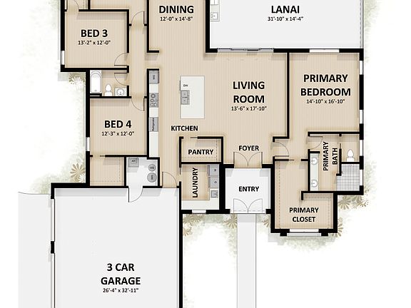 Three-car garageOversized windowsExpansive screened lanaiQuartz countertopsOpen-concept layoutGourmet kitchenSoft-close cabinetry