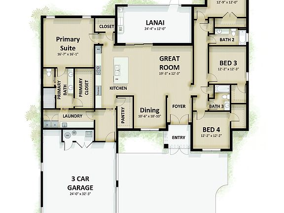 - Attached garage spaces: 3