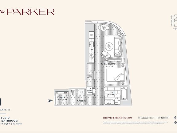 Floor plan: Studio, The Parker, Boston, MA 02116