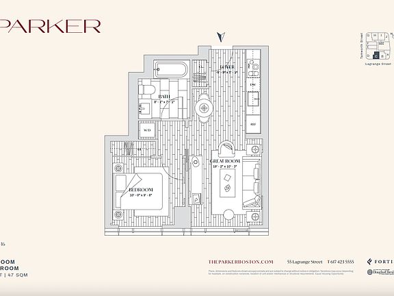 Floor plan: One Bedroom, The Parker, Ithzmr Boston, MA 02116