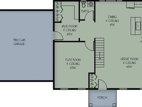 Home officeOpen concept layoutGuest retreatVersatile flex roomMud roomSpacious kitchen