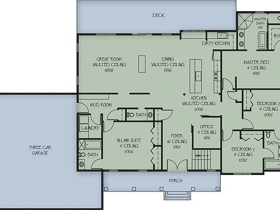 Full in-law suiteSpacious bedroomsPrivate primary suiteCharming covered front porchDramatic cathedral ceiling