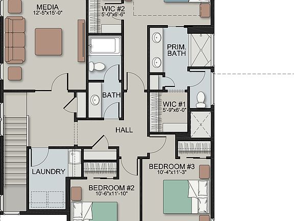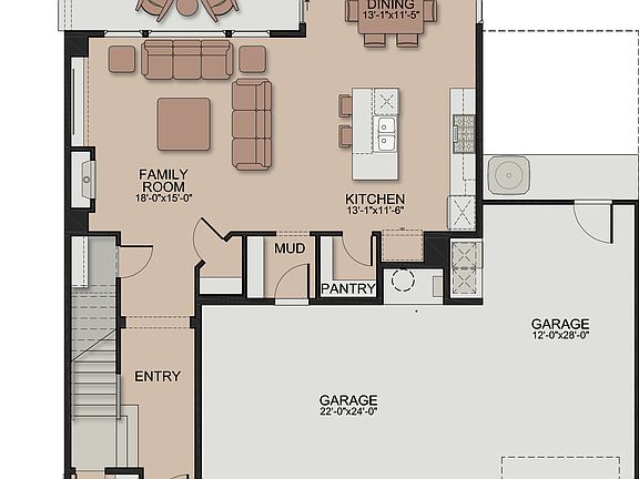The Kinloch is a stylish and functional two-story home. The open-concept main level features a spacious kitchen, dining, and family room, while the mudroom and walk-in pantry offer added convenience. Upstairs, the primary suite includes two walk-in closets and a spa-like bathroom with elegant tray ceiling details. The media room provides extra space for entertainment, and large windows throughout the home flood every room with natural light.