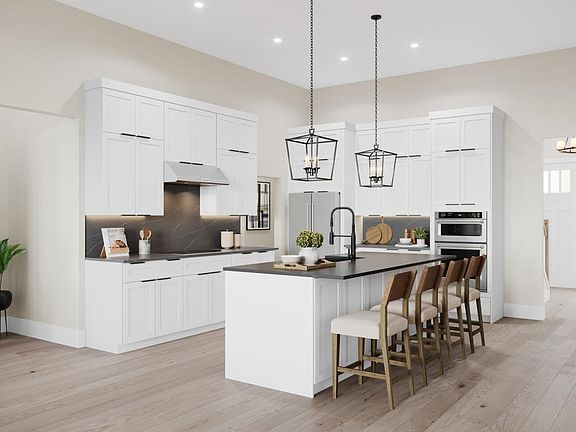 The stunning Endicott beautifully blends expansive entertaining spaces with luxurious retreats. A soaring two-story foyer flows into a two-story casual dining area and great room with views of the rear yard beyond. The well-designed kitchen is enhanced by an oversized center island with breakfast bar, ample counter and cabinet space, and a sizable pantry. The secluded primary bedroom suite is highlighted by a spacious walk-in closet and a spa-like primary bath with dual-sink vanity, a large luxe shower with seat, and a private water closet. On the second floor, a generous loft is adjacent to a secondary bedroom that features a walk-in closet and a shared hall bath. Additional highlights include a private office off the foyer, easily accessible laundry, a powder room, an everyday entry, and plenty of additional storage.