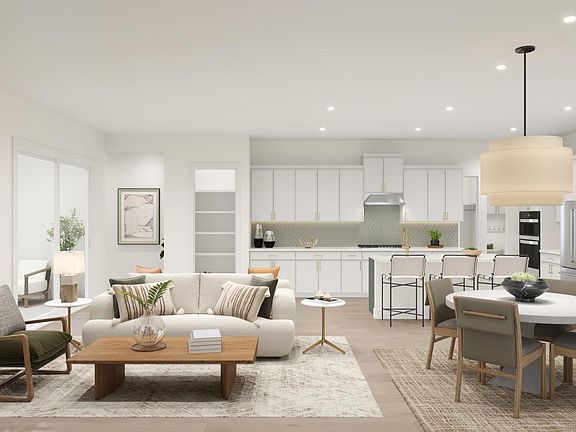 The Estelle balances comfort and style in a thoughtfully designed single-story layout. A foyer leads to the great room, kitchen, and casual dining area perfect for everyday living and effortless entertaining. The kitchen includes a central island with breakfast bar and a pantry, while a patio just off the great room extends the living space outdoors. The private primary suite features a generous walk-in closet and a spa-like bath with a dual sink vanity, a luxe shower, and a private water closet. Two secondary bedrooms share a full hall bath. Additional highlights include an everyday entry, laundry area, and built-in storage throughout.