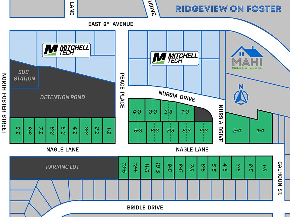 In a partnership with the Mitchell Area Development Corp, MAHI and Mitchell Technical College will be transforming this Eastside area into a truly unique neighborhood. On the north end, Mitchell Tech will be constructing on-site homes as part of their building trades programs. It's only fitting as Mitchell Tech has built a good portion of the homes in the Firesteel Heights neighborhood just north of Ridgeview!