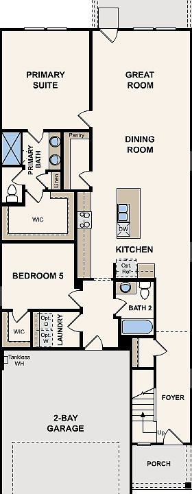 The two-story Bristol floor plan is the answer for the home buyer looking for a spacious home to meet their needs. The primary suite is privately situated on the first floor, separate from the secondary bedrooms in the home. The 5th bedroom is also located on the first floor, offering flexibility in how to use the space - if not an additional bedroom, a home office or nursery are some ideas that come to mind! Combined formals with an island kitchen make the Bristol a modern open-concept design that is so popular with today's home buyer. And the upstairs gameroom offers a secondary entertainment space for the home.