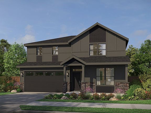 The Bridger is a highly adaptable and spacious two-story home offering up to 3,238 square feet of beautifully designed living space, with 4 to 5 bedrooms, 3 to 4 bathrooms, and a 3-car tandem garage with the option for a fourth bay. Thoughtfully crafted to balance open-concept living with flexibility, the Bridger is perfect for growing families, multi-generational households, or those who love to entertain. Upon entry, you're welcomed by a den-a perfect home office, study, or flex space. Also located on the main floor is a bedroom and full bathroom, ideal for guests or extended family. Just past this area, a convenient mud room with built-in storage connects directly to the spacious tandem garage. A nearby hall includes additional cabinetry for storage and the staircase to the second floor. At the heart of the home, the dining area flows into the gourmet kitchen, which features a large center island and an oversized walk-in pantry that also connects directly to the mud room for everyday convenience. Opposite the kitchen is the expansive two-story great room, filled with natural light from oversized windows and a double sliding glass door in the dining area that opens to the covered patio-perfect for indoor-outdoor living. Upstairs, you'll find a generous loft that can be converted into a fifth bedroom with an added full bathroom. If the fifth bedroom option is selected, a new loft space can be added above the great room to maintain that flexible living space. The primary...