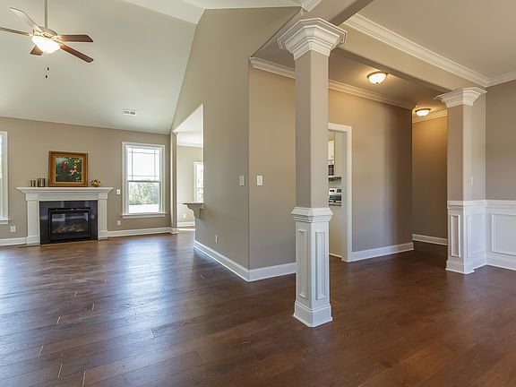 Another wonderful open concept floorplan with 2248 SF of living area with 3 bedrooms, 2 baths and 2 car garage with bonus room over garage. The exterior features Hardie Plank Siding. Covered front porch with stained bead-board ceiling. Open concept family room with gas log fireplace, and access to back patio. The kitchen features granite tops, stainless appliances, a peninsula with bar seating and separate breakfast nook and is open to the family room. Full dining room at front of the home featuring crown molding and wainscoting. Master suite features a large walk in closet and luxury in suite bath with walk in shower, garden tub, double vanities and enclosed water closet. A walk-in laundry room, 2 bedrooms and full bath are on opposite side of home from the master and large bonus room is over the garage.