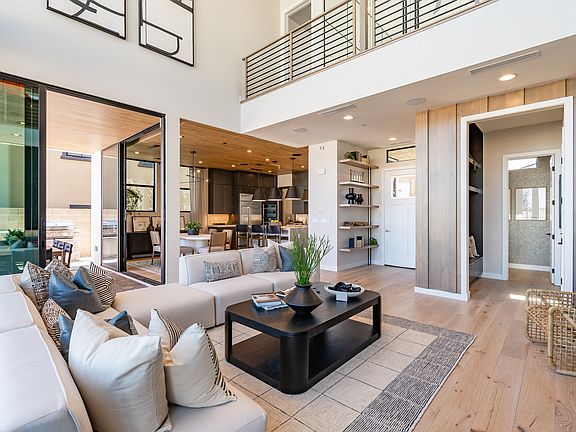 Perfect for growing families or multi-generational living, the Bristlecone floor plan features a first-floor guest suite, a loft, and a bonus room with stunning corner windows. Enjoy indoor-outdoor living with dramatic 10' sliding glass doors and a covered loggia, while the fitness room and smart storage solutions make it easy to stay active and organized.