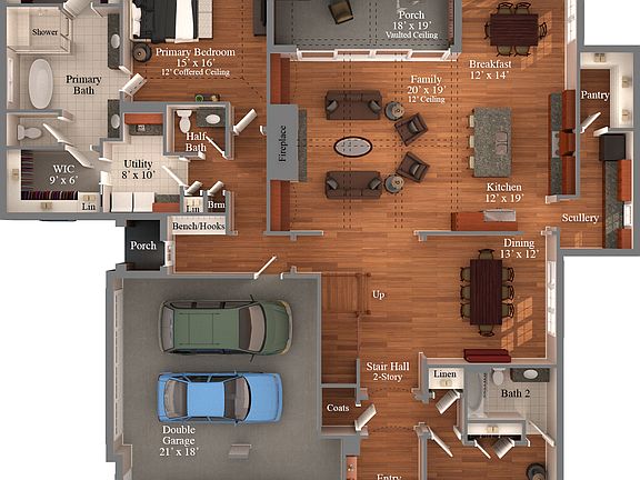 - Attached garage spaces: 3