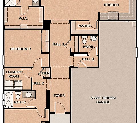 At 1889 square feet, the Del Dotto is a 3 bedroom, 2 1/2 bath, 3 car garage home,with a covered patio. It can be configured to include 4 bedrooms, a home office, den or open study. HERS 40