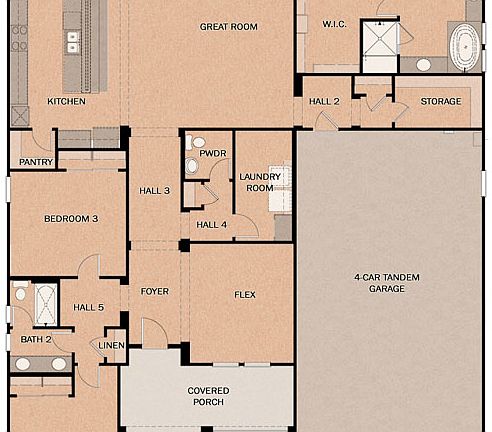 The Petaluma is a single level 2747 square feet home with 3 Bedrooms, 3 Baths, and a 4-Car Garage. Optional Retreat, 4th and 5th bedroom. HERS rating of 41.