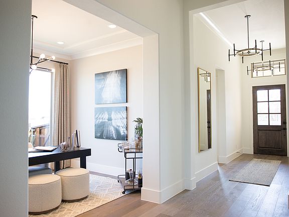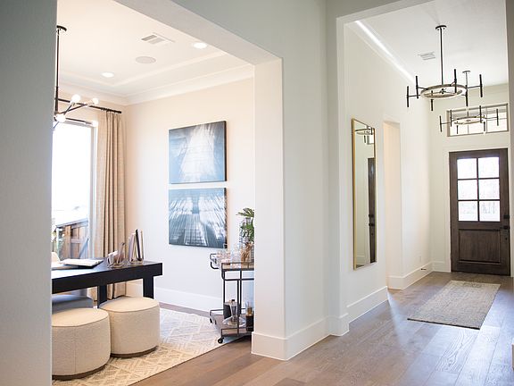 Charming one-story homes with a stunning entrance leading to a rotunda foyer. The great room opens to the kitchen, dining, and hearth room, creating a perfect place to entertain. The great room leads to the covered patio with an optional fireplace & optional sliding glass door. A perfectly situated study is adjacent to the flex/media room. Elegant owner's bath with a generous shower & soaking tub, split vanities, and walk-through to the laundry room.