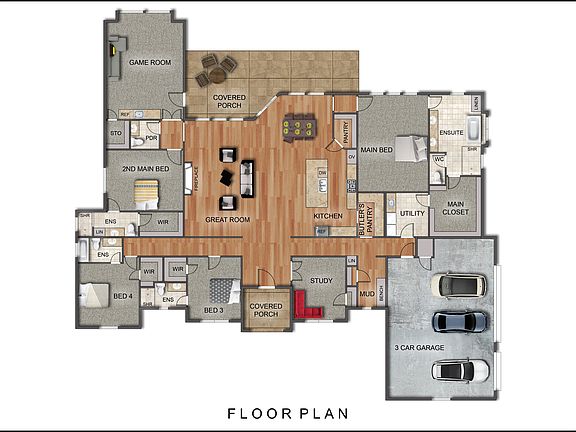 - Attached garage spaces: 3