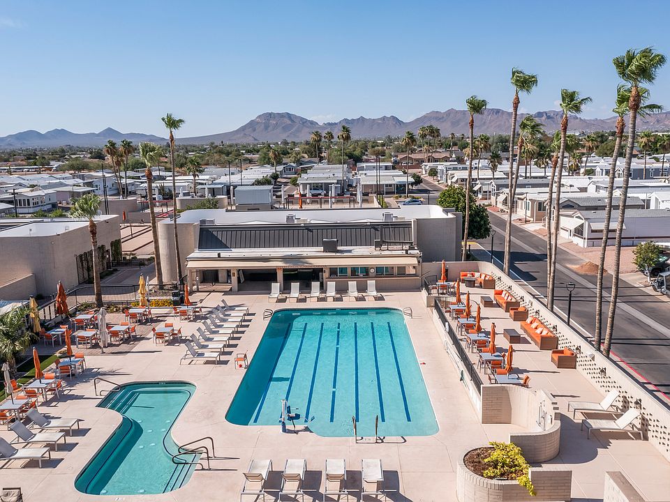 Spend your days playing games with friends inside our card room or outside on the pickleball and shuffleboard courts. Take a dip in our sparkling swimming pools or join in an early morning water aerobics class. Just 30 miles from the heart of Phoenix at the base of the Superstition Mountains, your opportunities for adventure are endless-both on-site and throughout Arizona.